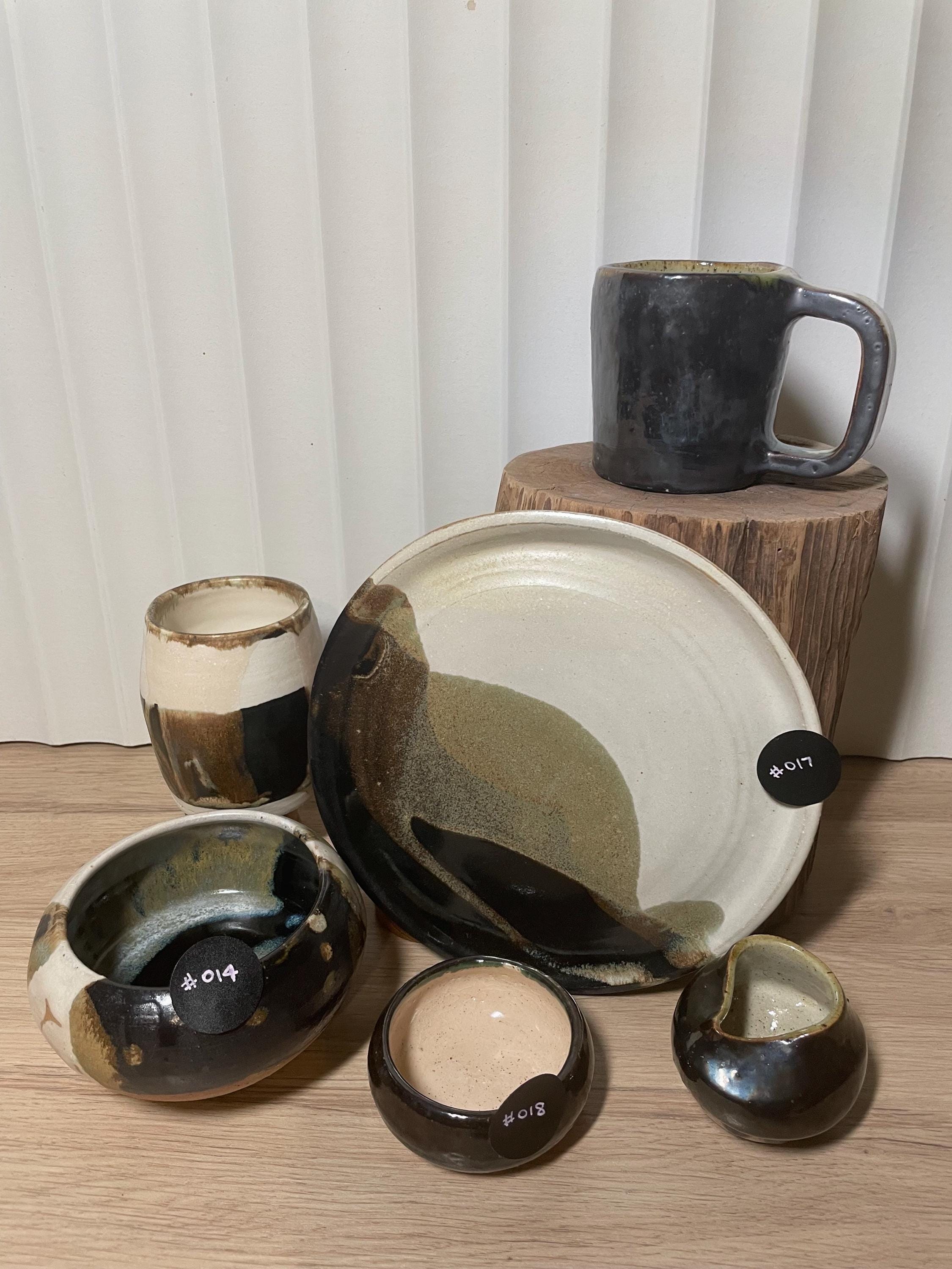 Each ceramic piece is uniquely crafted over a period of weeks; handthrown on a wheel, dried, trimmed and crafted, bisque-fired, glazed, re-fired, sanded and cleaned. No two pieces are the same.