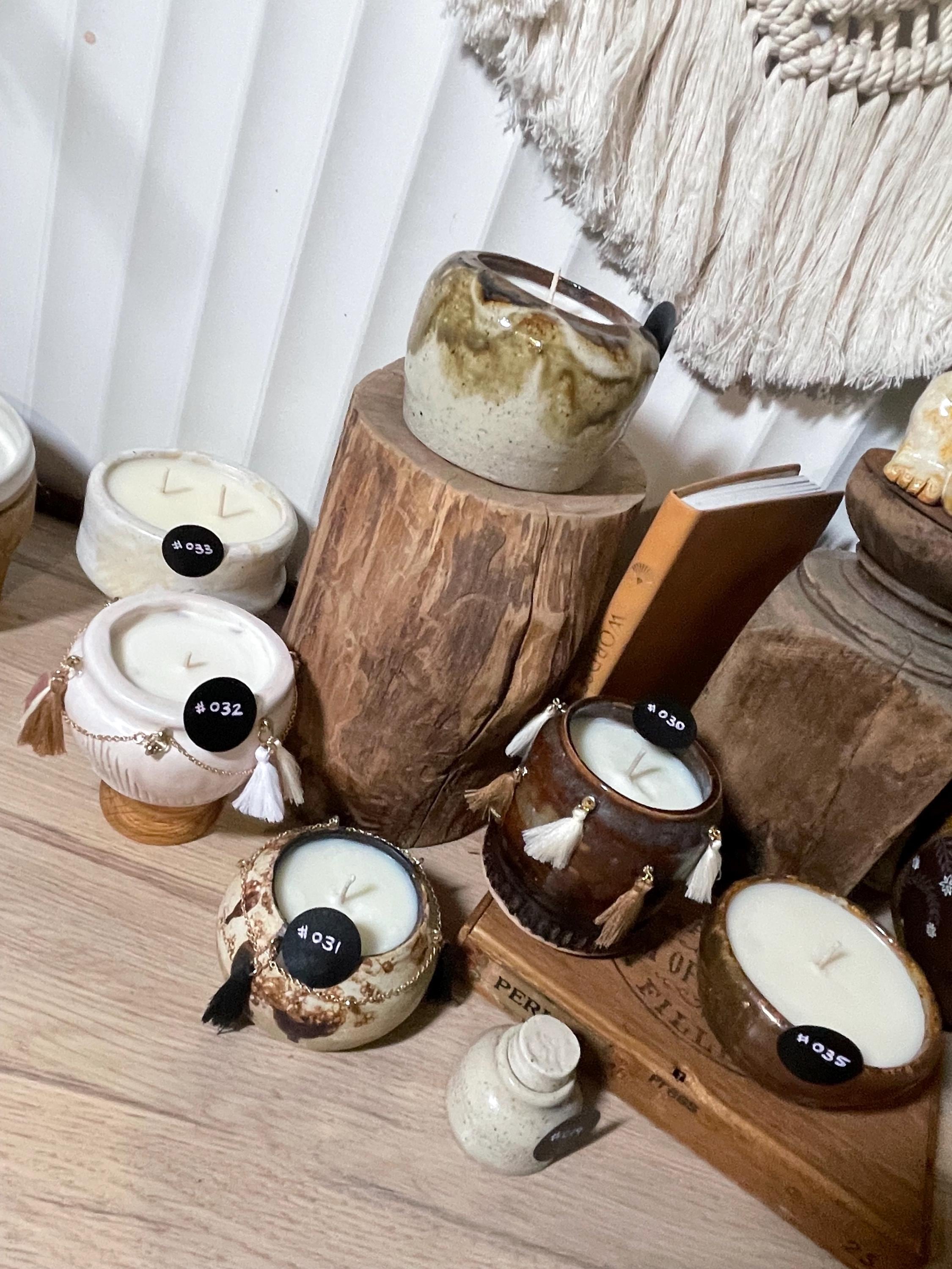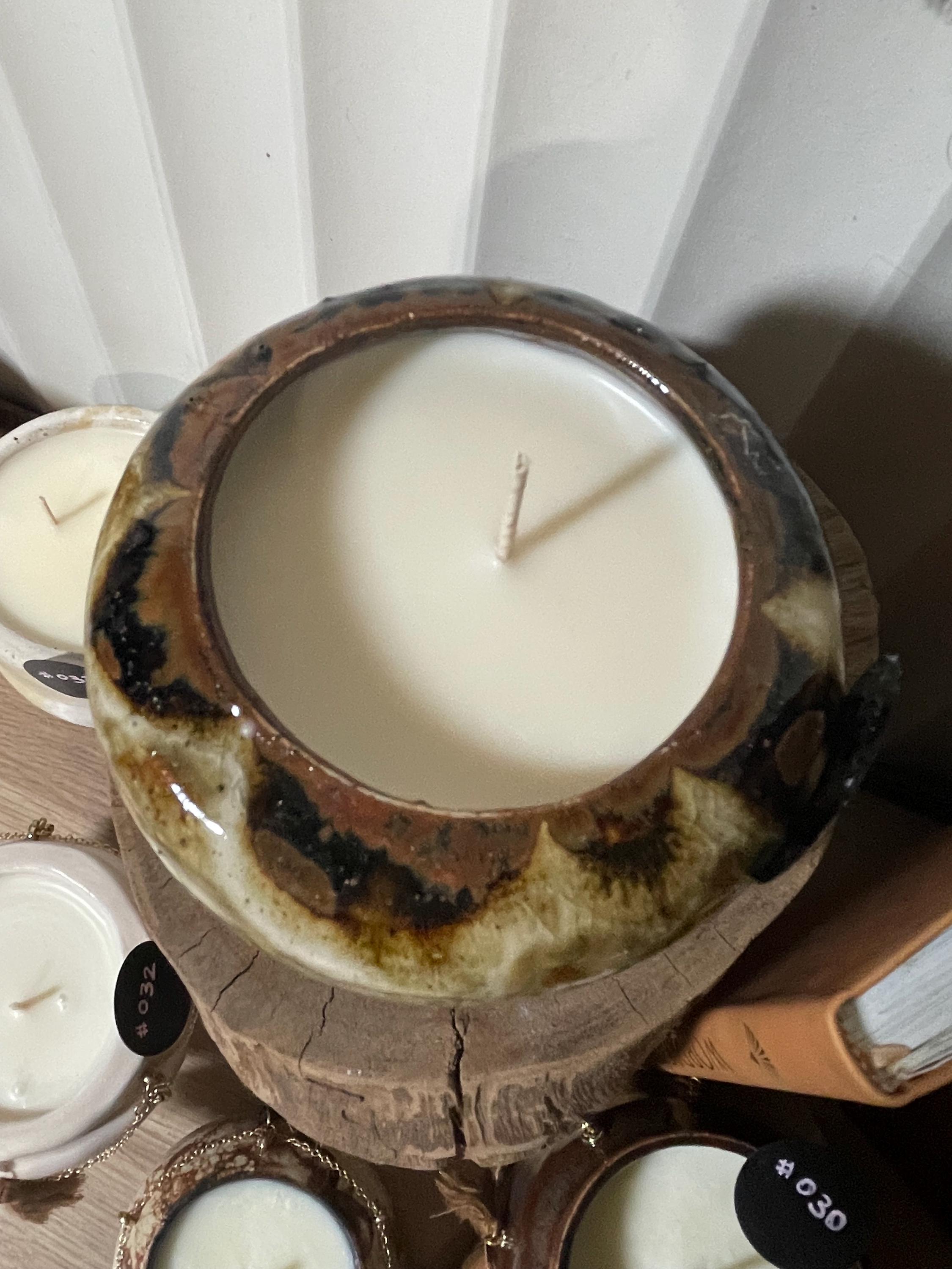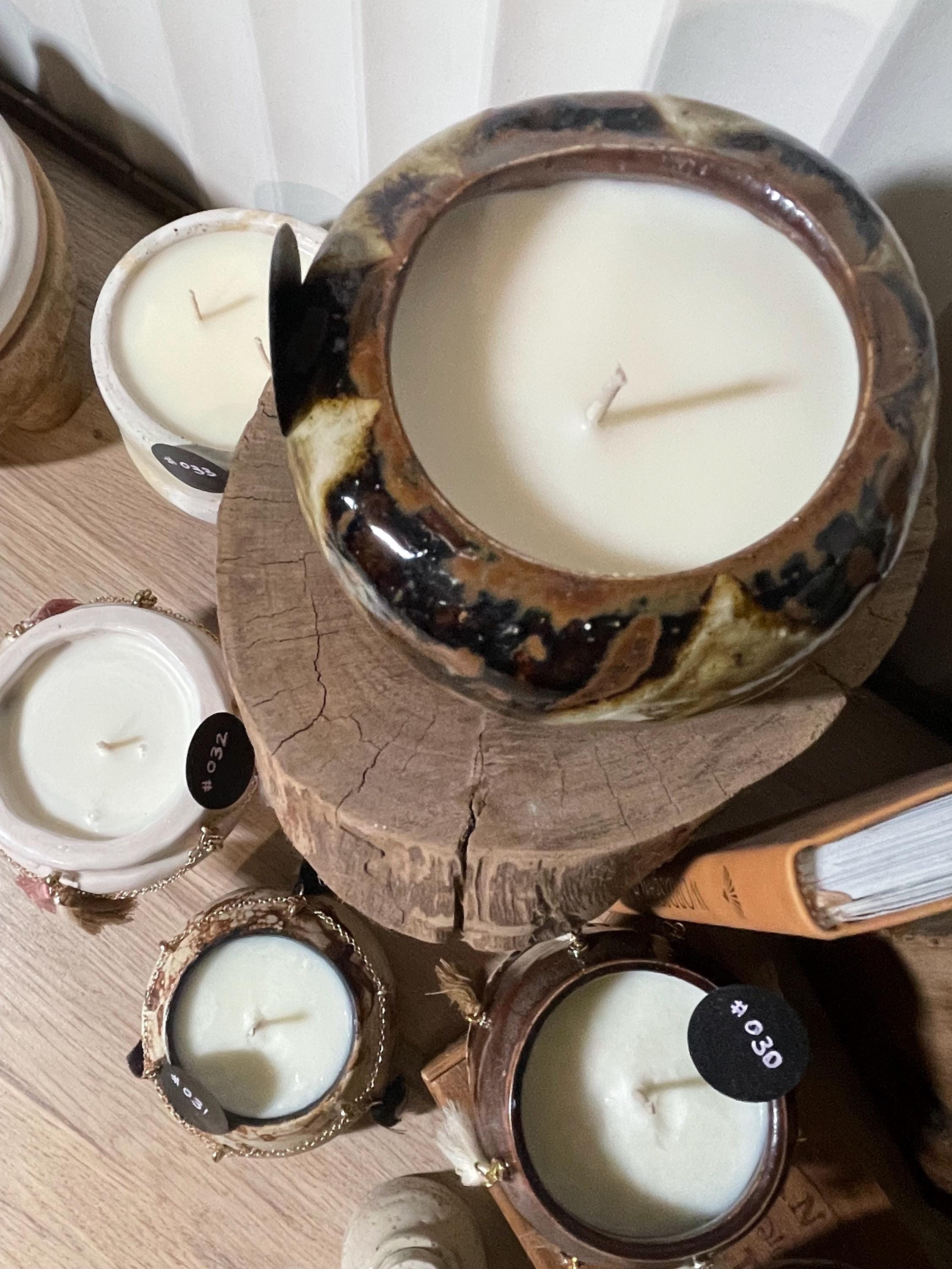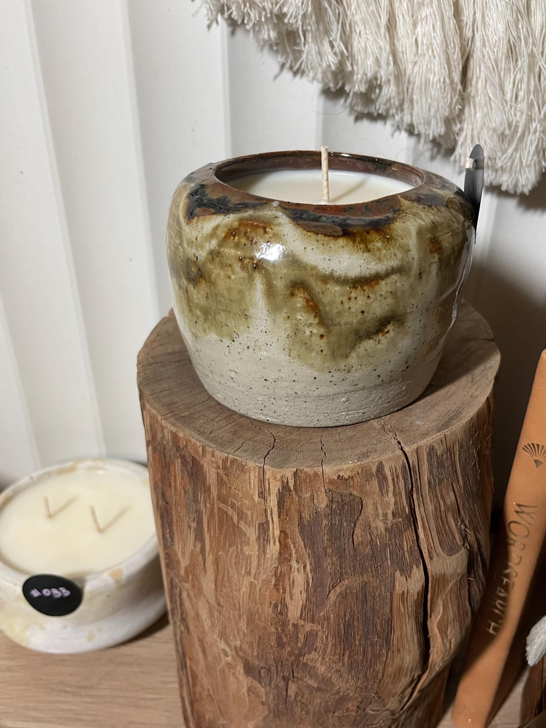 Quality soy wax candle within a ceramic artisan piece. Handmade in Brisbane Australia, by local award-winning artist Cassie Dean.